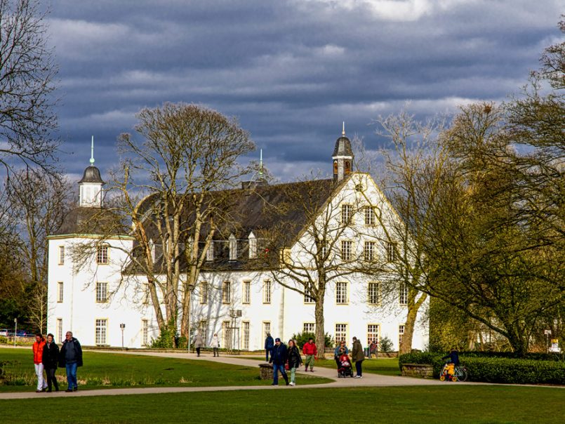 Die Grundlage für den heutigen Schlosspark im englisch-chinesischem Stil legte im 18. Jahrhundert der Brabanter Architekt F. Dukers. Seine Größe und Naturvielfalt machen den Schlosspark heute zu einem Naherholungsziel: Große Rasenflächen, Bach und Teich sowie ein Laubmischwald mit Wanderwegen prägen seine Struktur. Über Fußwege ist heute noch die Quelle der Borbecke erreichbar, die über einen schmalen Bachlauf den Wassergraben um das Schloss und den Schlossteich speist.