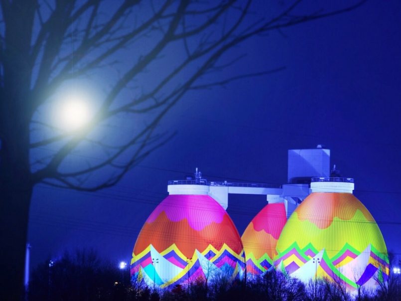 Dinslaken. Es ist wieder soweit: Die jährliche Suche nach schönen, bunten Ostereiern geht bald los. Nach den wohl größten Ostereiern der Gegend allerdings muss man gar nicht lange suchen: Riesig und nachts blau beleuchtet stehen sie auf dem Gelände des Klärwerks der Emschergenossenschaft an der Turmstraße!