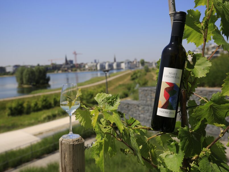 Dortmund eine Weinstadt? Bei dem Gedanken werden die meisten Dortmunder*innen schmunzeln und zum markant leuchtenden „U“ auf dem Dach der alten Union-Brauerei blicken. Ganz klar: Dortmund ist doch eine Bierstadt. Doch so ganz eindeutig ist es nicht: Im 15. Jahrhundert hat es nachweislich Weinanbau in der Dortmunder Umgebung gegeben und seit genau zwölf Jahren lässt die Emschergenossenschaft unter Beteiligung zahlreicher Bürgerinnen und Bürger diese Tradition wiederaufleben. „Weinberge direkt an den renaturierten Emscher-Gewässern symbolisieren das neue Lebensgefühl im Emscher-Gebiet. Die Emscher und ihre Lebensläufe sind dank des Emscher-Umbaus nicht länger offene Schmutzwasserläufe, sondern bieten mit ihrer neuen blaugrünen Infrastruktur die Möglichkeit, die Flusslandschaften auf eine ganz neue Art und Weise zu genießen“, sagt Dr. Frank Dudda, Vorsitzender des Genossenschaftsrates der Emschergenossenschaft und Oberbürgermeister der Stadt Herne.