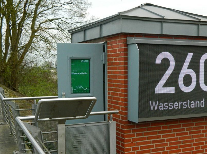 Der Lippe-Pegel Lünen, in Betrieb genommen in den 1930-er Jahren, wurde vor vier Jahren komplett erneuert. 2017 brachte der Lippeverband ein 1,6 Quadratmeter großes LED-Display und einen großen Monitor am Pegelhäuschen an. Zwei angrenzende Hochwasserschutzmauern wurden im Zuge der Modernisierung des Pegelhäuschens künstlerisch gestaltet. Auf zwei Wänden stellt die Umsetzung durch „Die Urbanisten“ aus Dortmund seitdem die Funktionen der Lippe als Natur- und Erlebnisraum in den Vordergrund.