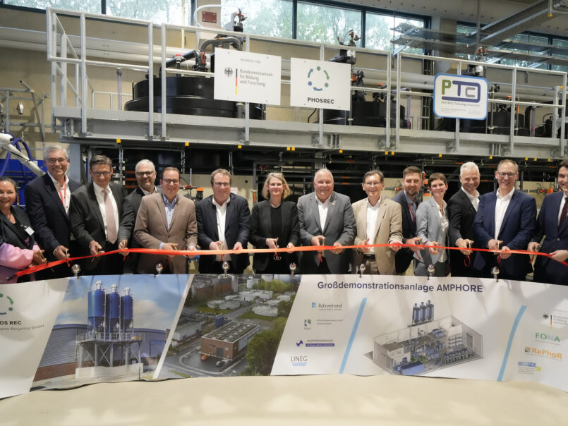 Bottrop. Phosphor ist ein wichtiger Rohstoff, der jedoch endlich ist – die Verfügbarkeit der Vorkommen ist stark begrenzt. Gleichzeitig ist Abwasser eine nachhaltige Quelle, um daraus den essenziellen Nährstoff Phosphor zurückzugewinnen und als Material für beispielsweise Düngemittel wiederzuverwerten. Auf dem Gelände der Kläranlage der Emschergenossenschaft in Bottrop hat die PhosRec Phosphor-Recycling GmbH eine Demonstrationsanlage zur Phosphorrückgewinnung aus Klärschlammasche gebaut. Am Donnerstag (2.5.) wurde sie feierlich eingeweiht, bereits in Kürze startet die zweijährige Versuchsphase.