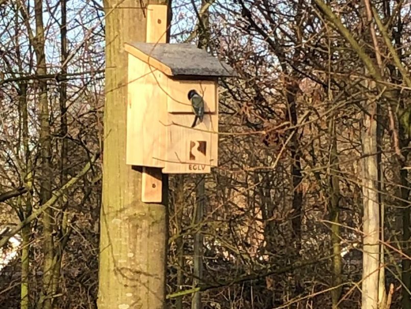Kaum waren die Nistkasten befestigt, ging auch schon das Flugschauspiel los – wie am Pumpwerk Hamm-Eickhoffstraße. „Es ist immer wieder erstaunlich, wie schnell die Meisen die neuen Nisthilfen finden und annehmen“, freute sich Gunnar Jacobs, Biologe und Ornithologe beim Lippeverband.