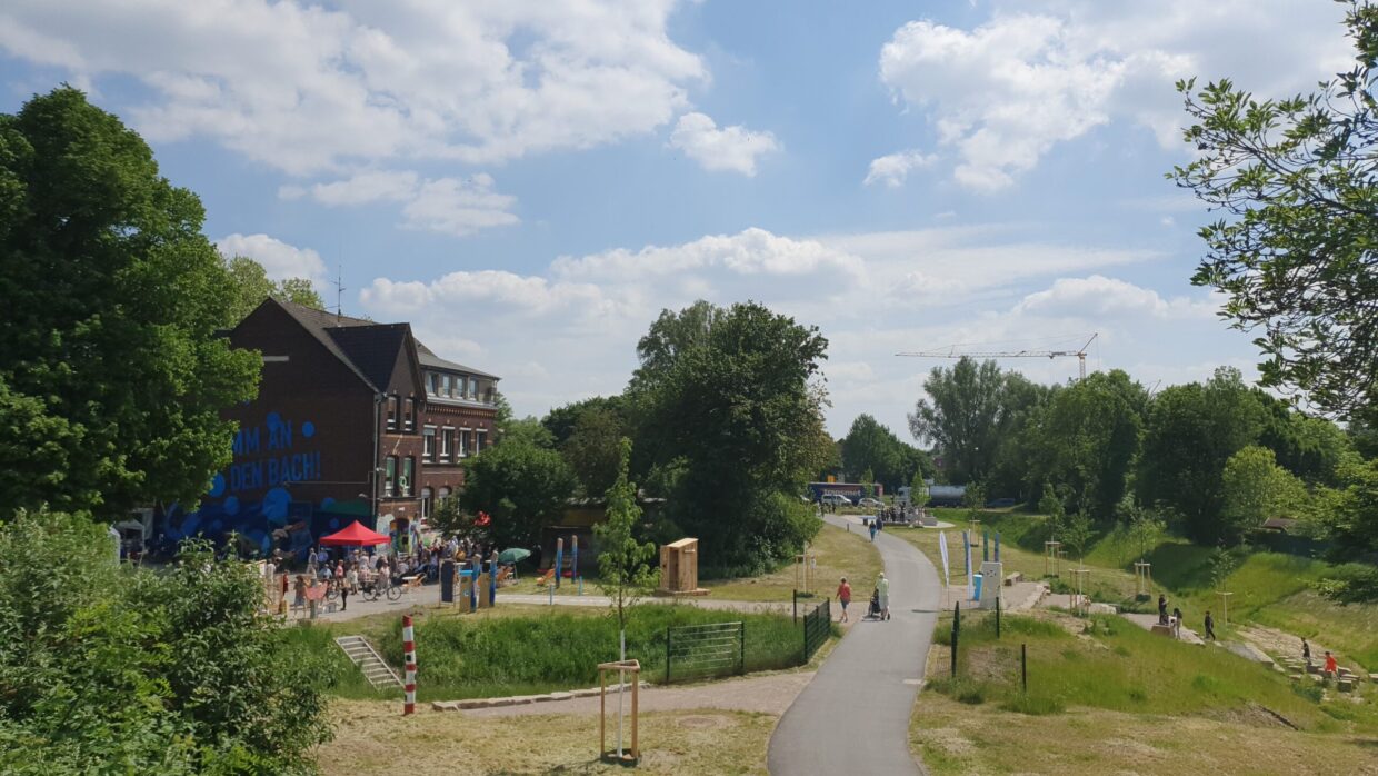 Am 14. Mai 2022 zum Tag der Städtebauförderung war es so weit: Nach gut 2,5-jähriger Bauzeit ist die Umgestaltung und ökologische Verbesserung des Katernberger Baches abgeschlossen. Ein guter Grund mit allen im Stadtteil zu feiern!!! Bei herrlichem Frühlingswetter fand im Umfeld der Freien Schule ein Fest für Klein und Groß statt. Im Jahr 2023 wurde das Projekt mit dem Preis Soziale Stadt 2023 ausgezeichnet.