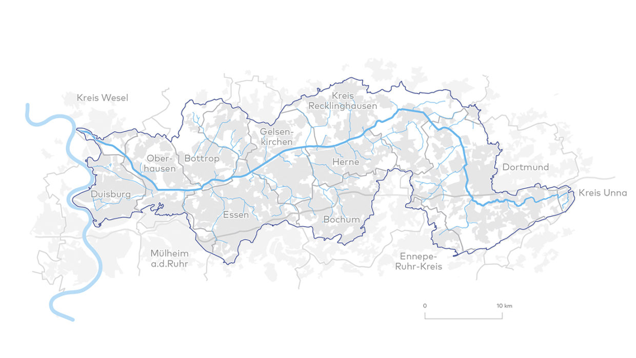 Die großen deutschen bzw. europäischen Flüsse wie Rhein, Donau, Main, Spree, Weser und Elbe haben über Jahrhunderte die Gestalt und Entwicklung ihrer städtischen Anrainer geprägt. Die heute dort nicht mehr gewerblich benötigten Uferflächen eröffnen Chancen für die Rückkehr des Flusses als erlebbarer Stadt- und Landschaftsraum, für zeitgemäßes Leben und Arbeiten in neuen Quartieren. Bescheidener, aber auf ihre Weise durchaus prägend, beflügelt die „neue Emscher“ die Stadt- und Regionalentwicklung im nördlichen Ruhrgebiet. So profitiert auch die für 2027 geplante Internationale Gartenausstellung (IGA) Metropole Ruhr, deren Zukunfts- und Leitareale an Emscher (Dortmund, Gelsenkirchen, Dinslaken/Voerde), Lippe (Bergkamen/Lünen) und in geografisch weiterer, aber themennaher Nachbarschaft des Emscher Landschaftsparks in Duisburg (-Hochfeld) liegen.