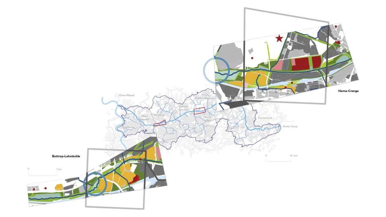 Alle Perspektivprojekte entspringen zunächst jeweils der kommunalen Stadtentwicklungspolitik. Die neue Emscher bietet jedoch das Potenzial zur Verbindung dieser Projekte zu einer gemeinsamen Raumstrategie – ein Entwicklungsband mit starker Netzwirkung im nördlichen Ruhrgebiet. Angesichts der kommenden großen Herausforderungen ist dieses regionale Denken und Handeln von grundsätzlicher Bedeutung für die Entwicklung unserer Region. Zu Recht formuliert die „Neue Leipzig Charta 2020“ als Leitdokument für eine zeitgemäße Stadtpolitik in Deutschland und Europa: „Eine nachhaltige widerstandsfähige Stadtentwicklung ist eingebettet in den weiteren Kontext einer Region oder von Metropolräumen und beruht auf einem komplexen Netzwerk funktionaler Abhängigkeiten und Partnerschaften.“