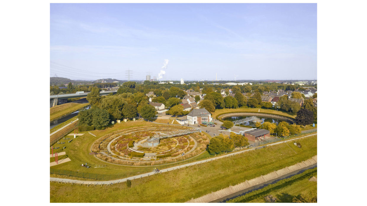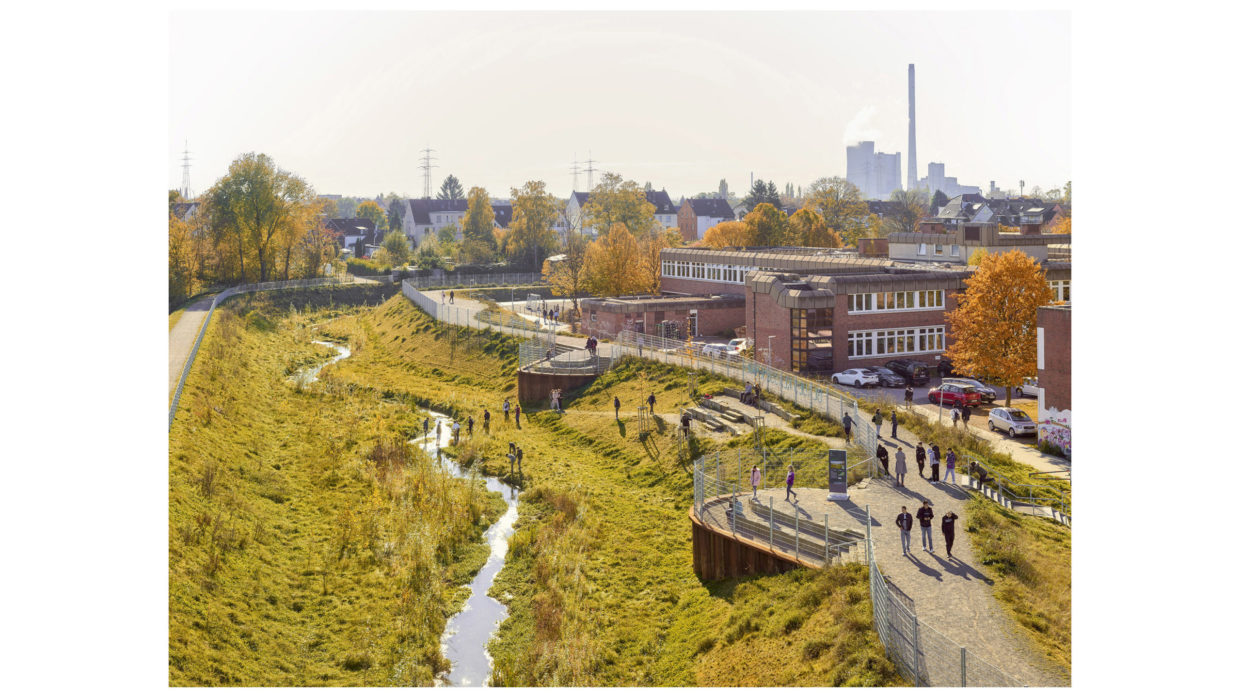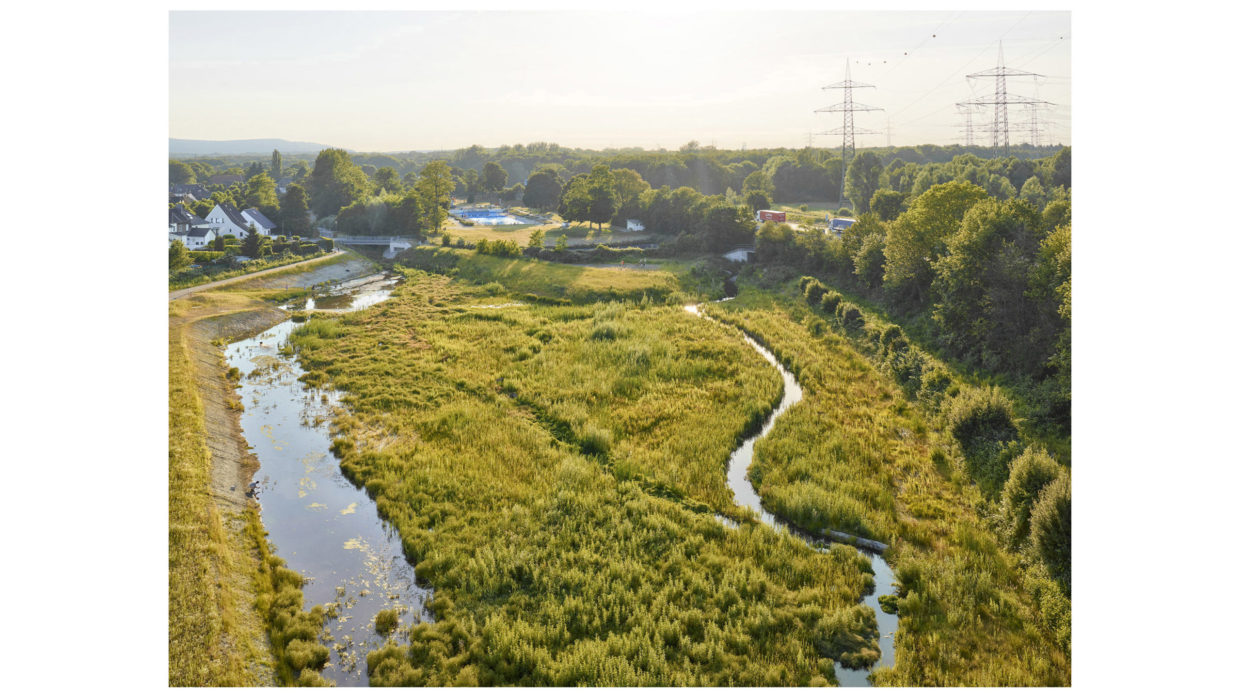 Der Jahrhundertumbau umfasst aber nicht nur das lineare Band der Emscher, sondern genauso das – räumlich immer noch unterschätzte – System der 35 Neben- und Zuflüsse mit einer Gesamtlänge von circa 328 Kilometern. Diese Bäche beziehungsweise Vorfluter gelten nach ihrer zumindest stellenweisen Revitalisierung und räumlichen Öffnung zu Recht als städtebauliches, soziales und ökonomisches Entwicklungs- und Begabungsgebiet für die Region. Rund ein Drittel davon ist inzwischen ökologisch aufgewertet, der größere Teil folgt bis 2028. Der Fluss und seine Zuflüsse verlieren ihre rein entsorgende Funktion, die ab dann der unterirdische Kanal übernimmt. Die Trennung von Fluss- und Abwasser schafft die Voraussetzung für die ökologische und städtebauliche Option einer neuen blau-grünen Fluss- und Stadtlandschaft 21+ im Ruhrgebiet.