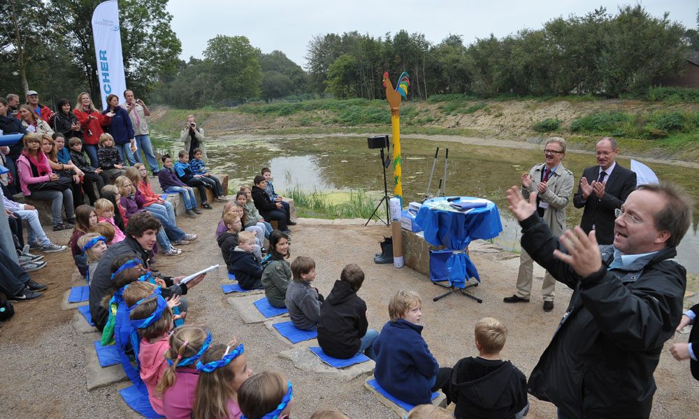 Um auch eine Brücke zu den Bewohnerninnen und Bewohnern in Brauck zu schlagen, wurden sie durch das Stadtteilbüro aktiv in den Prozess einbezogen. Im Rahmen von vier Braucker Stadtteilfesten zwischen 2008/2011 und in zahlreichen weiteren Mitmachaktionen konnten alle bei der »Ideenschmiede Unser Hahnenbach« ihre Gedanken zur Gestaltung einbringen. Nach einer kreativen und spannenden Entwicklungs- und Umsetzungszeit ist nun der Weg frei: für Spaziergänger, Radfahrer, Schulklassen und auch für Tiere – für das Wassererlebnis am Hahnenbach.