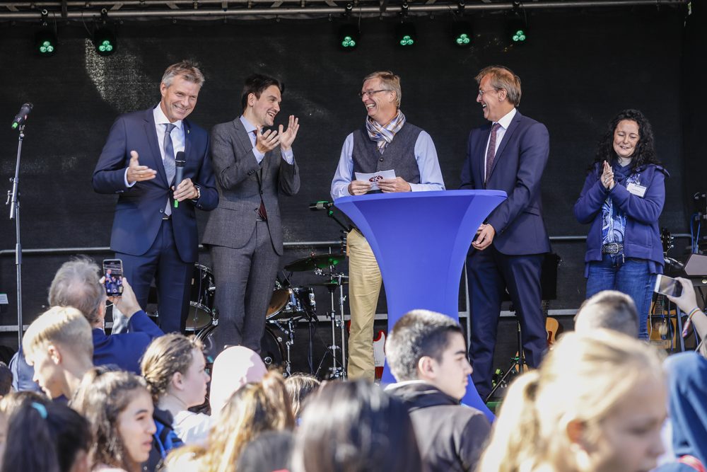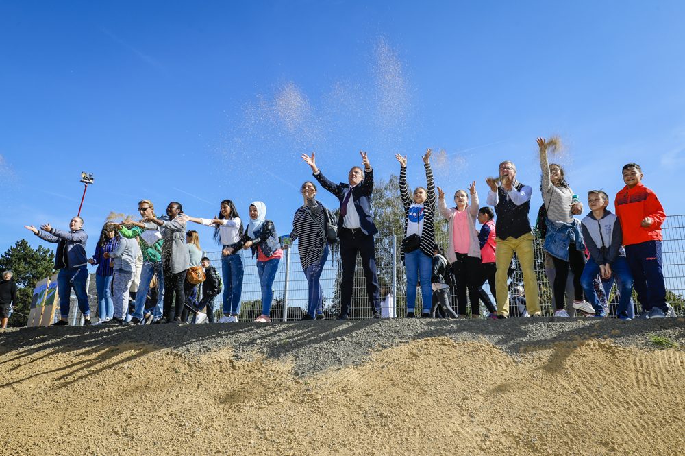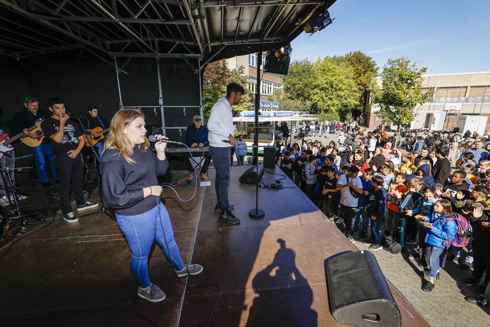 Parallel zum Umbau haben die Schülerinnen und Schüler künstlerische Darbietungen erarbeitet und beim Sommerfest 2019 dem Publikum präsentiert. Dabei ließen sie sich inspirieren von Werken des bedeutenden Komponisten Johann Sebastian Bach. Bei der Produktion von Kunstwerken, Schauspiel, Fotografien und Videofilmen stand die Verbindung zum ökologischen Umbau des unmittelbar angrenzenden Hellbachs und damit der Emscher-Umbau im Allgemeinen im Mittelpunkt. Fachlich kompetente Anleitung und Unterstützung erfuhren die Projektklassen durch das ART.62 Kreativzentrum, welches im Auftrag der Emschergenossenschaft vor Ort mit Know-how zur Seite stand.