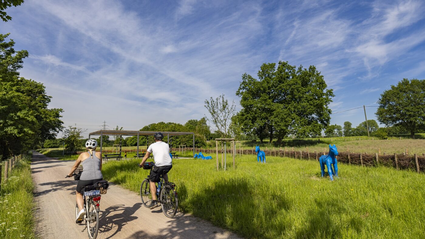 Rund um Castrop-Rauxel entstehen durch den Emscher-Umbau neue Flusslandschaften, die man auf dieser Tour genießen kann. Sie führt entlang von Auwäldern, über Felder und Hügel im Emscher-Bruch und teils über schmale Pfade. Damit ist diese Tour etwas anspruchsvoller. Aber wie so oft gilt: Ein bisschen Anstrengung lohnt sich und der Müsliriegel schmeckt gleich doppelt so gut! Die weiten Wasserflächen um den Hof Emscher-Auen locken Vogelfreund*innen und Spaziergänger*innen an. Der Deininghauser Bach kehrt zurück in die Stadt und wird zum Mitmachort. Und der Gewerbepark an der alten Zeche Erin zeigt, wie ein Ort der Arbeit gleichzeitig Genussort sein kann.