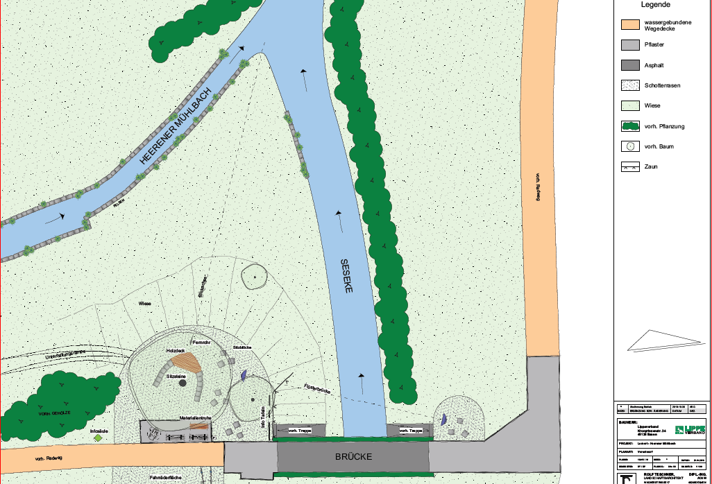 Die Bewohnerinnen und Bewohner des Stadtteils Heeren-Werve haben den Standort an der Mündung des Heerener Mühlbachs in die Seseke als einen schönen Ort zum Picknicken identifiziert und den Lippeverband gebeten, den Standort dementsprechend zu gestalten. Nach näherer Überprüfung stellte sich heraus, dass hier ein Aufenthaltsort geschaffen werden kann, der nicht nur zum Picknicken einlädt, sondern auch für andere Zwecke wie Lernen, Entspannen und Ausruhen etc. genutzt werden kann. Der Lippeverband und die Stadt Kamen haben daher einen Prozess in Gang gesetzt, der zur Neugestaltung des Standorts geführt hat. Vorbild sind die Blauen Klassenzimmer und die Lern- und Entdeckerorte der Emschergenossenschaft und des Lippeverbandes, die einem Amphitheater ähneln und über Sitzstufen Zugänge zum Gewässer schaffen und gute Aufenthaltsqualitäten bieten.