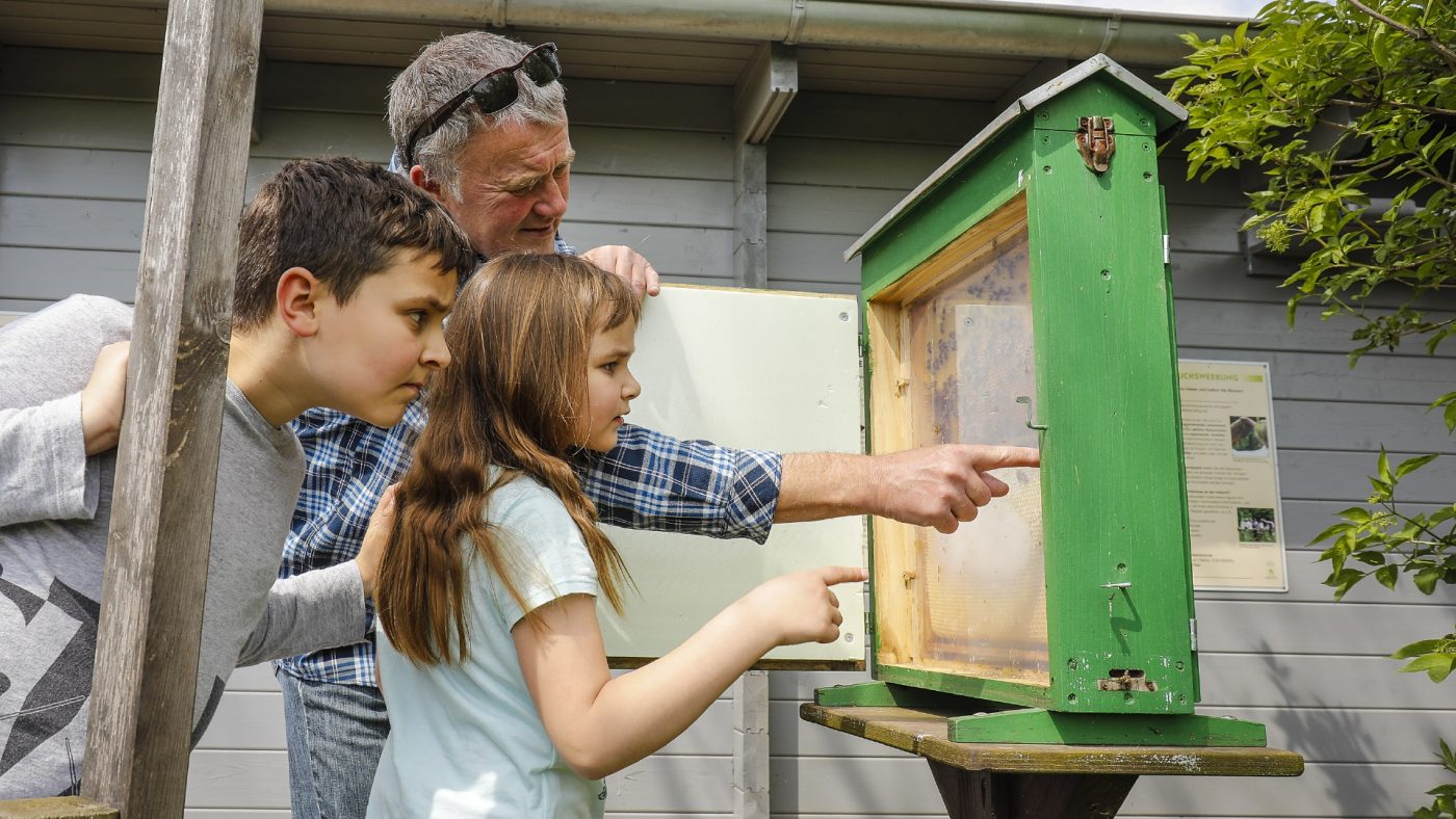 Darüber hinaus werden in einer erfolgreichen Kooperation mit Imker*innen geeignete Stellplätze auf unseren Flächen zur Verfügung gestellt. Derzeit gibt es bereits über 20 aktive „Emscher-Imker*innen“. Der lokal gewonnene Honig kann als „EmscherGold“ auf den Emscher-Höfen probiert und erworben werden.