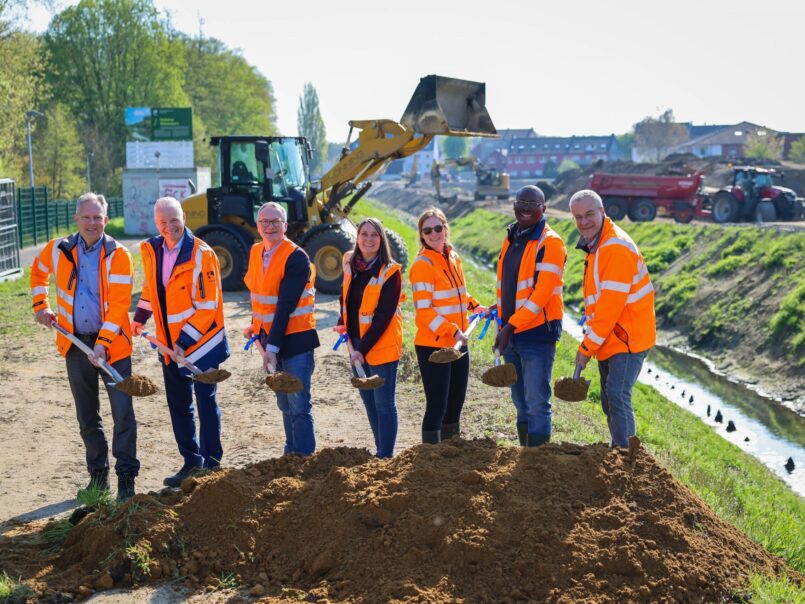 Bürgermeister André Dora und Lippeverband setzen ersten Spatenstich