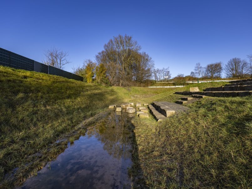 Am Samstag kann außerdem zum ersten Mal das neue und große Graffiti mit dem Schriftzug „Komm an den Bach“ an der Freien Schule bewundert werden. An der Wand ist ebenfalls ein QR-Code angebracht. Mit dem Handy gescannt gelangt man zu Audioguides, die von den Schülerinnen und Schülern der Schule sowie einigen Lehrkräften besprochen wurden. Dank der Tonaufnahmen erfahren Besucherinnen und Besucher nützliche und wissenswerte Informationen zum neuen Katernberger Bach – ganz leicht von den Kindern erklärt. Die Stadt Essen hat ebenfalls fleißig gebaut: Von ihr stammen unter anderem der neue große Kinderspielplatz, der Jugendort und der Parcoursspot.