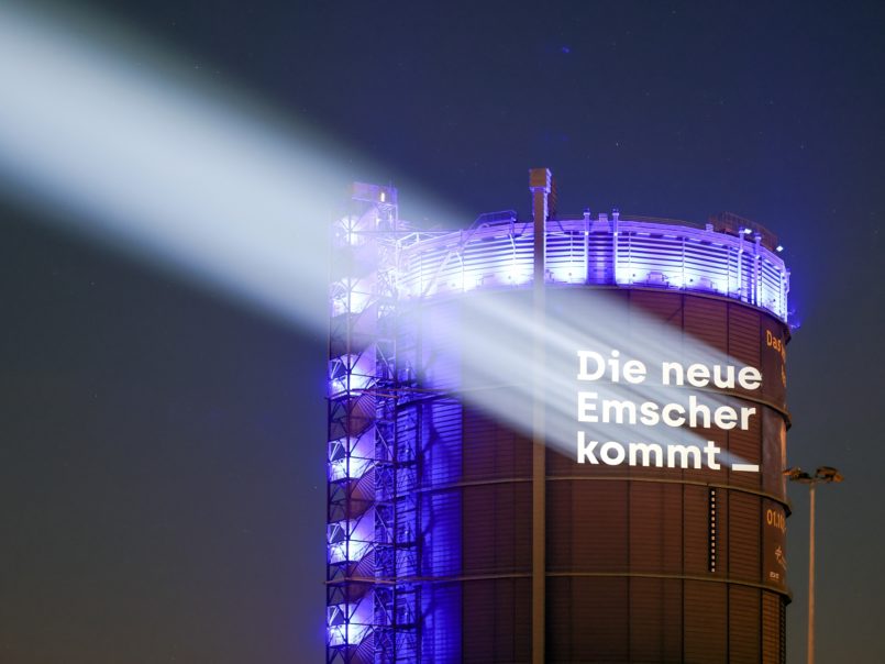 Die Abwasserfreiheit in der Emscher bedeutet den Abschluss des Generationenprojektes Emscher-Umbau und steht gleichzeitig für einen Neubeginn. Sie ist die Voraussetzung für die ökologische Umgestaltung der nun sauberen Gewässer. Blaugrünes Leben entsteht nun dort, wo einst ein graues Betonkorsett die Natur verdrängte. Diesen für die sozial-ökologische Transformation des Ruhrgebietes immens wichtigen Moment will die Emschergenossenschaft feiern – und zwar gemeinsam mit der Region. Die Illuminationsaktion wird dabei bis Ende März durch mehrere Städte der Emscher-Region ziehen.