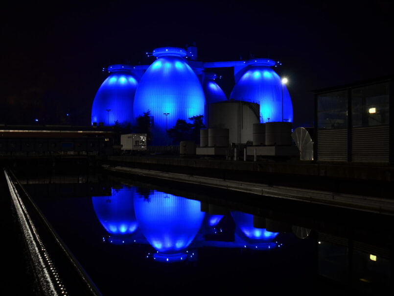 Bottrop. Die Emschergenossenschaft setzt im Rahmen der diesjährigen „Earth Hour“ am Samstag, 28. März, ein Zeichen für den Umweltschutz. An der Kläranlage Bottrop in der Welheimer Mark bleiben die markanten blauen Außenbeleuchtungen der vier eierförmigen Faulbehälter sowie des Kamins nicht nur für eine Stunde, sondern sogar das ganze Wochenende über ausgeschaltet. Der Wasserwirtschaftsverband macht aus der „Earth Hour“ also ein ganzes „Earth Weekend“.