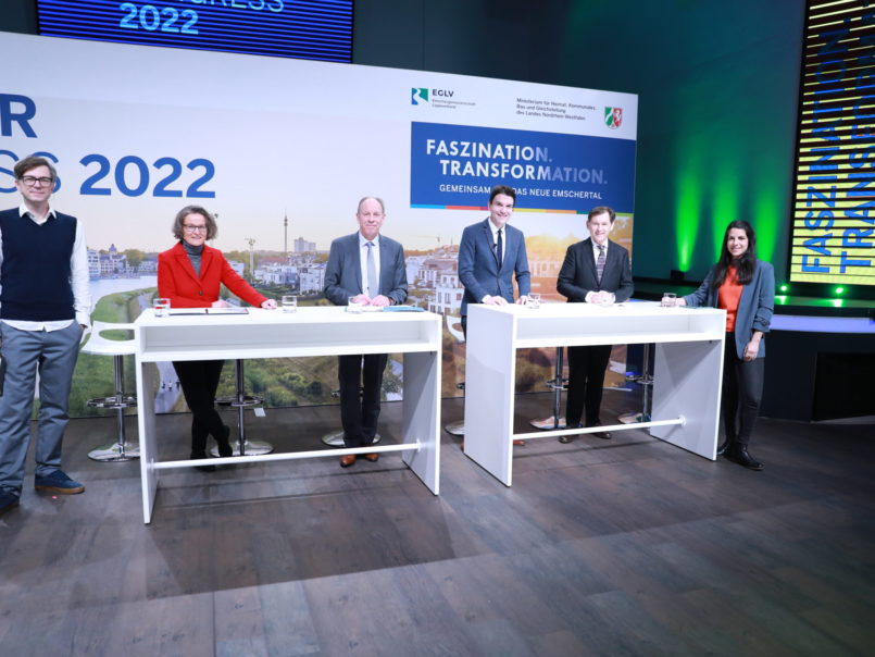 Bottrop. „Erfolge feiern – Zukunft gemeinsam gestalten“ – so lautete das Motto des Emscher-Kongresses, der am Donnerstag (3.3.) im Story Eventhouse in Bottrop stattfand. Im Fokus der Veranstaltung der Emschergenossenschaft und des Ministeriums für Heimat, Kommunales, Bau und Gleichstellung des Landes Nordrhein-Westfalen stand die Verbesserung der Wohn- und Lebensqualität an der Emscher und ihren Zuflüssen durch die Verknüpfung von Emscher-Umbau und Städtebauförderung. Dies ist das Ziel der Kooperation „Gemeinsam für das Neue Emschertal“, in der seit dem Jahr 2006 die Städte an der Emscher, die Emschergenossenschaft und das nordrhein-westfälische Bauministerium zusammenarbeiten. Rund 5,5 Mrd. Euro wurden in die Generationenaufgabe Emscher-Umbau investiert, die von Anfang an von Stadterneuerungsmaßnahmen links und rechts der Emscher begleitet wurde. Insgesamt wurden die 15 Emscher-Städte mit über 1,25 Mrd. Euro Städtebaufördermitteln unterstützt.