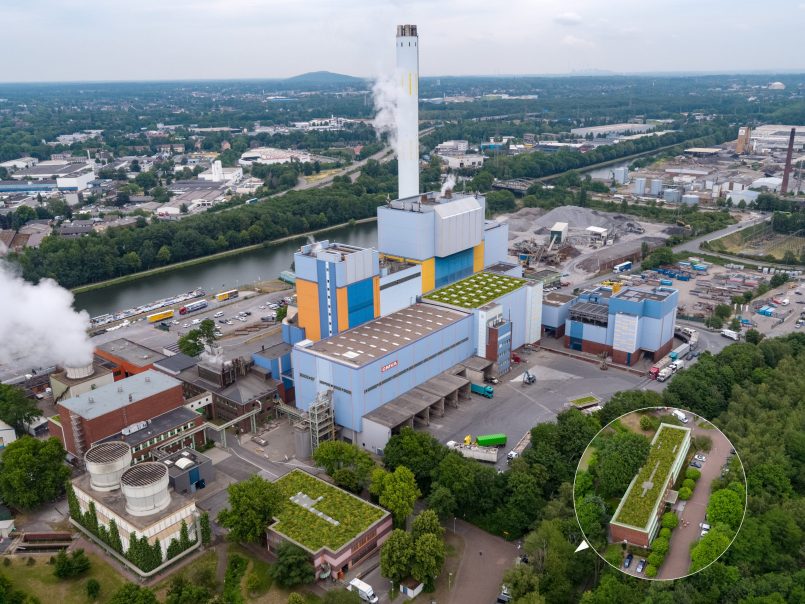 Ein weiteres Beispiel ist die Realisierung einer Extensiv-Begrünung auf einigen bestehenden Gebäuden der Gemeinschafts-Müll-Verbrennungsanlage Niederrhein GMVA in Oberhausen. Darüber hinaus wurden zwei Fassaden begrünt, wodurch gleichzeitig auch neue Biotope entstanden.