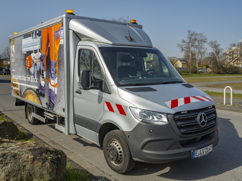 Auch außerhalb des Kanalschachts bietet das neue TV-Inspektionsfahrzeug einige Vorteile für das das Team des Lippeverbandes: Der Arbeitsplatz im Fahrzeug ist ergonomisch ausgestattet und ein isolierender Fahrzeugaufbau schützt im Sommer gegen Hitze und im Winter gegen Kälte. Weiterhin hat das Spezialfahrzeug eine Umfeldbeleuchtung, die den Arbeitsbereich neben dem Fahrzeug beleuchtet. So werden die Arbeiter*innen im Straßenverkehr besser gesehen und können auch selbst mehr erkennen.