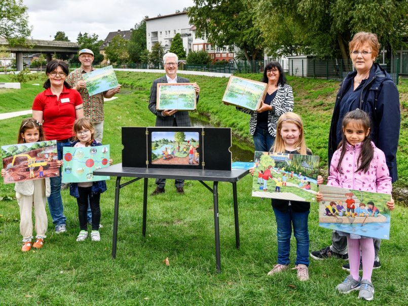 Kamen. Mit Kescher und Becherlupe haben die „Seseke-Kinder“ im vergangenen Jahr den Fluss aus nächster Nähe kennengelernt. Ihre Erlebnisse wurden vom Lippeverband in Form eines Kamishibai aufgearbeitet. Bürgermeisterin Elke Kappen und Raimund Echterhoff, Vorstand für Personal und Nachhaltigkeit des Lippeverbandes, überreichten zwei dieser „Erzähltheater“ heute (31.8.) an Kinder des AWO Familienzentrums „Flohkiste“ und der katholischen Kita Heilige Familie.