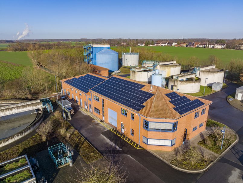 Bönen. Die Kläranlage Bönen hat eine neue Dach-Photovoltaikanlage, um Sonnenlicht zu elektrischer Energie umzuwandeln. Sie besteht aus 385 Modulen und erstreckt sich über eine Fläche von 730 Quadratmetern, das ist ungefähr die Größe eines Handballfelds. Daraus ist ein Eigenverbrauch von rund 120.000 Kilowattstunden im Jahr möglich. Mit dem Blockheizkraftwerk zusammen deckt die Photovoltaikanlage mehr als die Hälfte des Strombedarfs der Kläranlage.