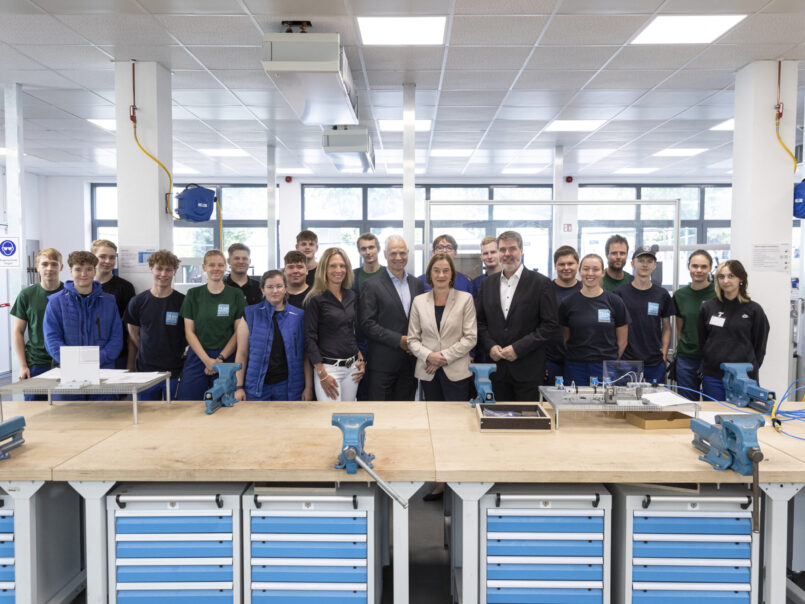 Im Erdgeschoss des 540 Quadratmeter großen Ausbildungszentrums befindet sich die Werkstatt für die mechanische und elektrotechnische Ausbildung. Fachkräfte für Mechatronik und Industriemechanik finden hier eine optimale Lernumgebung. Für die Vermittlung der theoretischen Inhalte gibt es einen eigenen Schulungsraum. Im ersten Obergeschoss bietet der Neubau neben Büro- und Umkleideräumen auch einen Aufenthaltsraum mit Küchenzeile.