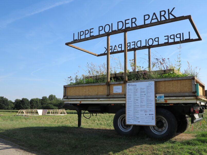 Apropos Polder: Blickt man auf 100 Jahre Lippeverband in Dorsten zurück, fällt einem ein Ereignis recht schnell ein – der Lippe Polder Park! Unter dem Motto „Kunstobjekt und Central Park am Wasser für einen Sommer“ wurde die Fläche zwischen Lippe und Wesel-Datteln-Kanal im Jahr 2015 für zehn Wochen zu einem außergewöhnlichen Stadtpark am Wasser sowie Ort der Begegnung und verband Hervest und die Altstadt miteinander. Das künstlerische Konzept für den Park an der Lippe stammte von der Rotterdamer Künstlergruppe Observatorium und der Dorstener Künstlerin Marion Taube.