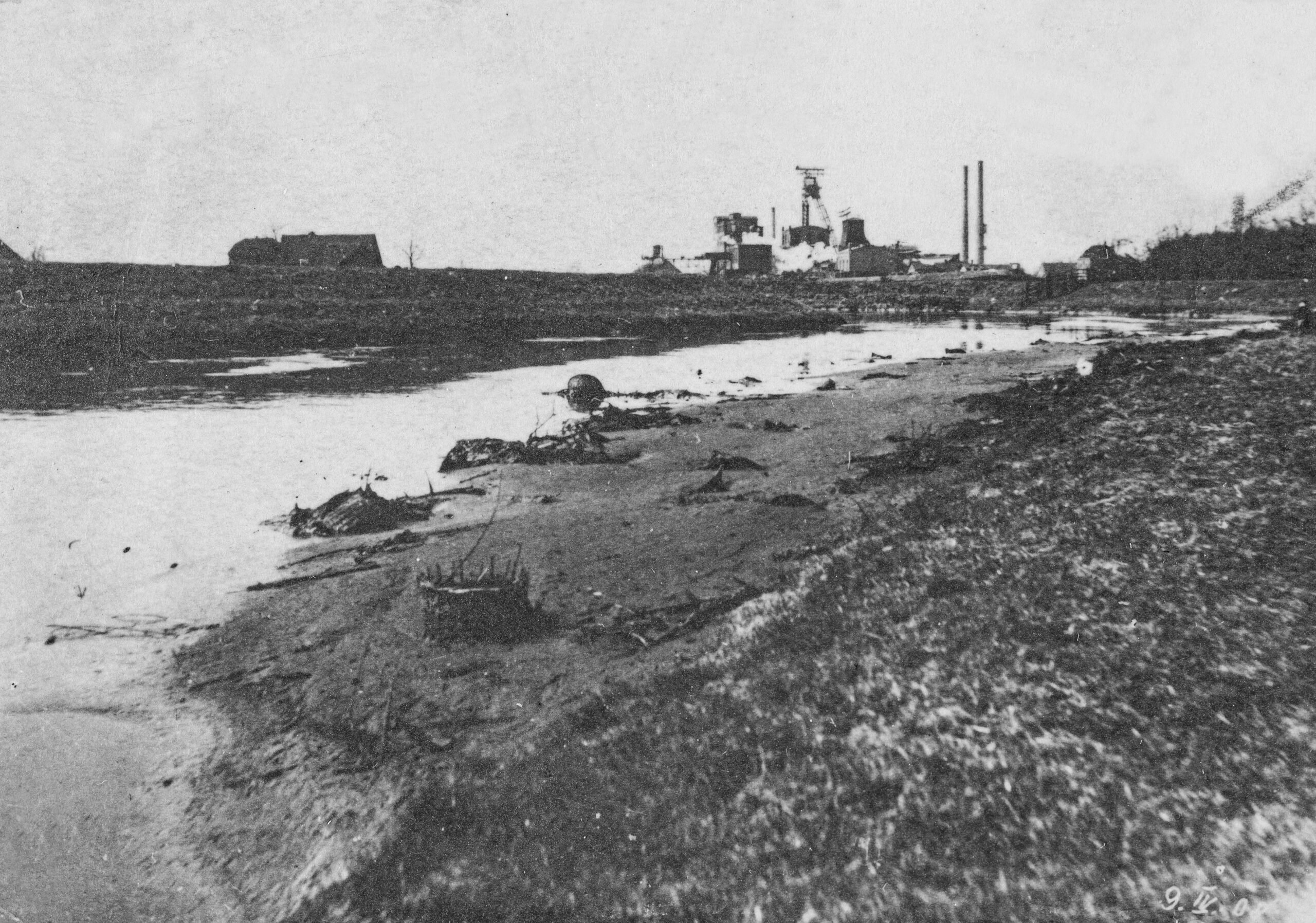 Die ursprüngliche Mündung der Emscher in den Rhein im Jahr 1908.