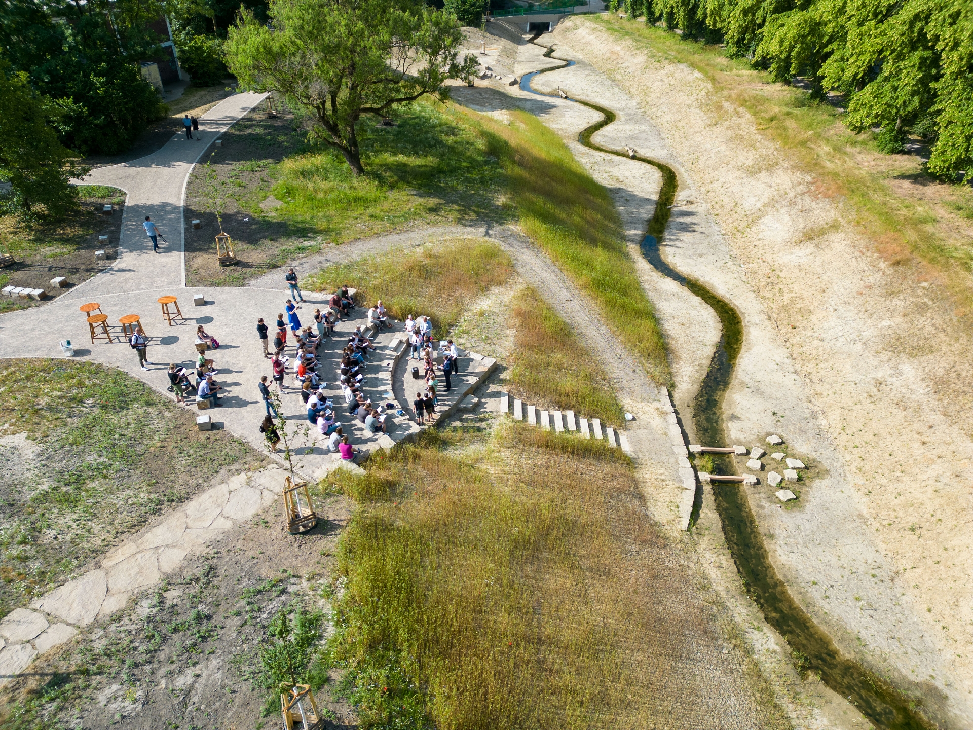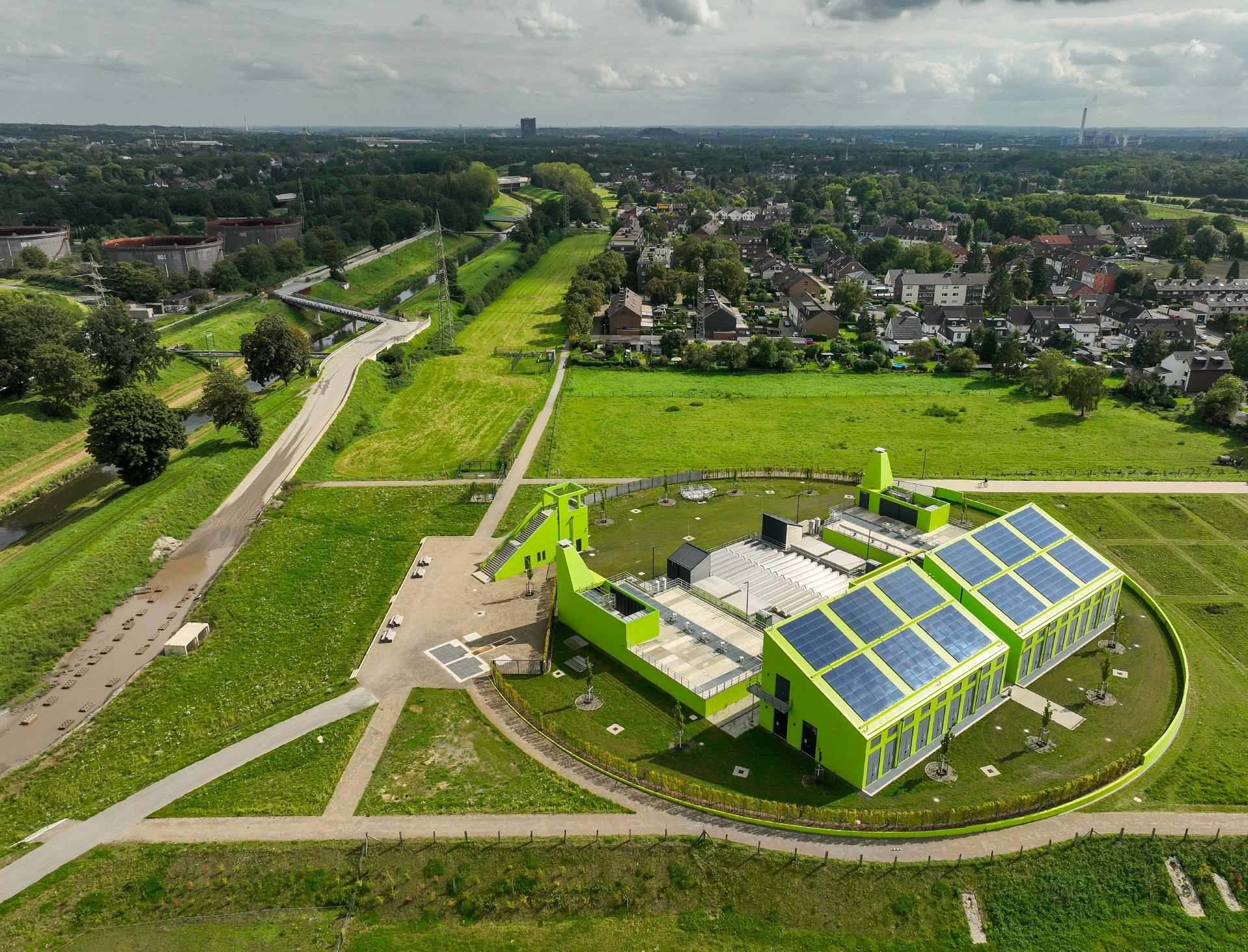 Das Blaue Klassenzimmer am Katernberger Bach in Essen wurde im Oktober 2021 eingeweiht. An dem Konzept wirkten auch Lernende und Lehrende der Freien Schule Essen mit.