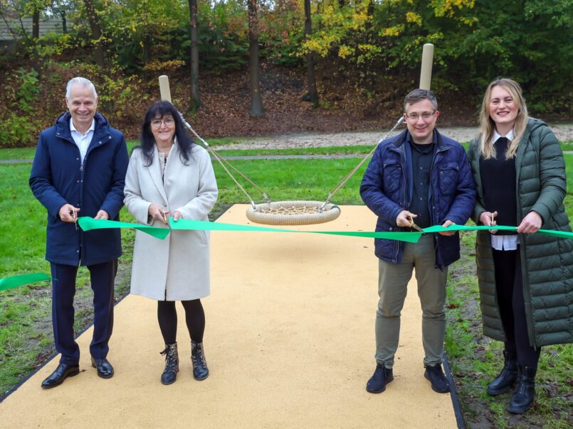 Kamen. Der Seseke-Park wird um eine Attraktion reicher. Ob beim Entspannen auf Bänken oder beim Toben auf dem Spielplatz: Direkt an der Seseke gelegen können hier Groß und Klein, Alt und Jung den langen Nebenfluss der Lippe erleben. Vervollständigt wird das Ensemble nun durch eine Nestschaukel, die von Kamener Bürger*innen als Ergänzungswunsch an die Stadt herangetragen wurde. In Zusammenarbeit mit der Stadt Kamen realisierte der Lippeverband diesen Wunsch. Die Nestschaukel wurde diese Woche gemeinsam mit Elke Kappen, Bürgermeisterin der Stadt Kamen, und Katharina Gidel als Vertreterin der Bürger*innen, eingeweiht.