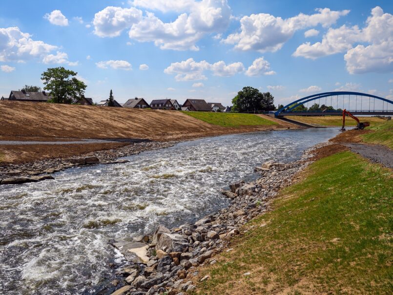 Vorlaufend müssen noch Kampfmittelsondierungen durchgeführt werden, im Anschluss daran werden dann Spundwände in den Boden eingebracht. Gestützt bzw. eingefasst werden sie durch Wasserbausteine. Diese Arbeiten werden voraussichtlich bis Ende September andauern. Insgesamt hofft die Emschergenossenschaft, die Sicherungsmaßnahmen – abhängig von den Witterungsverhältnissen – bis Ende 2024 abschließen zu können.