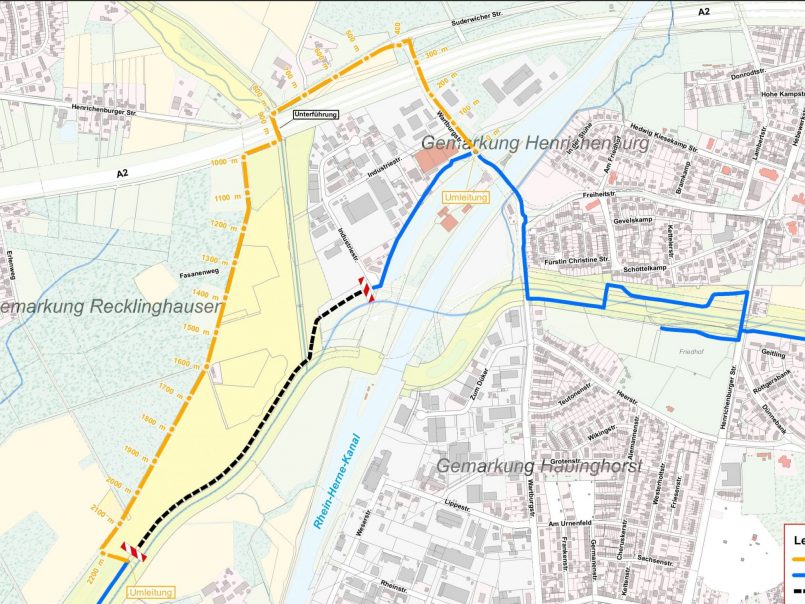 Von der Industriestraße in Castrop-Rauxel bis auf Höhe des Erlenwegs in Recklinghausen kann der Emscher-Weg voraussichtlich für zwei Jahre nicht befahren werden. Eine Umleitung über die Wartburgstraße, die Suderwicher Straße und den Emschertalweg wird für die Dauer der Sperrung eingerichtet.