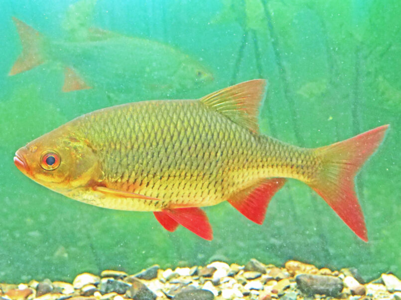 Emscher-Gebiet. Gute Nachrichten gibt es von der Emscher zum „Tag der Artenvielfalt“, der jedes Jahr am 22. Mai gefeiert wird: Die Rotfeder (Scardinius erythrophthalmus) ist mittlerweile an mehreren Stellen entlang der Emscher festgestellt worden. Die Besiedlung der Emscher erfolgt selbstständig über die Mündung am Rhein, womit sich auch der Erfolg der Renaturierung dieses Bereiches bei Dinslaken und Voerde nachweisen lässt. Denn erst durch die umfangreiche Umgestaltung der letzten knapp 500 Flussmeter ist es Fischen aus dem Rhein möglich, nun auch in das Emscher-System hinein zu schwimmen. Zuvor war die technisch stark überformte Emscher eine Einbahnstraße, denn sie fiel über ein Absturzbauwerk aus Beton zirka fünf Meter tief in den Rhein. Im Zuge der naturnahen Umgestaltung durch die Emschergenossenschaft wurde die von der Europäischen Wasserrahmenrichtlinie geforderte „ökologische Durchgängigkeit“ hergestellt – oder mit anderen Worten: die EU-Reisefreiheit für Fische!