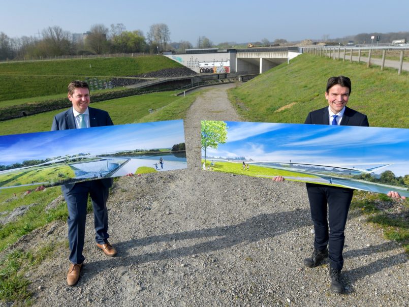 Christoph Tesche, Bürgermeister der Stadt Recklinghausen: „Der ‚Sprung über die Emscher‘ wird ein toller Brückenschlag zu dem Natur- und Wasser-Erlebnis-Park, der gleich nebenan auch auf Recklinghäuser Gebiet entsteht.“