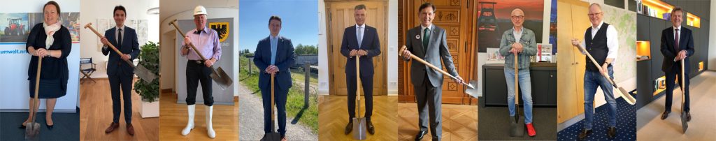 Per Videobotschaft übergab die Ministerin den Spaten an den Vorstandsvorsitzenden von Emschergenossenschaft und Lippeverband Prof. Dr. Uli Paetzel nach Essen. Dieser übernahm virtuell den Spaten der Ministerin: „Im Emscherland nimmt der Natur- und Wasser-Erlebnis-Park einen zentralen Platz ein. Das Wasserkreuz in Castrop-Rauxel ist dabei der ideale Ort: Drei Wasserläufe treffen sich hier in unterschiedlichen Lagen: oben der Rhein-Herne-Kanal, darunter die Emscher, und – in mehr als 20 Metern Tiefe – unser Abwasserkanal Emscher. Er ist die Voraussetzung für die neue saubere Emscher und all die Mehrwert-Effekte, die unser Emscher-Umbau mit sich bringt: Neue Radwege entlang des abwasserfreien Flusses und Weinberge an seinen renaturierten Hängen unterstreichen die neue Lebens- und Aufenthaltsqualität im Emscherland“, erklärte Uli Paetzel.